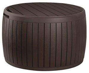 37 Gallon Round Deck Box, Patio Table for Outdoor Cushion Storage, Brown