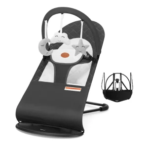 Foldable Baby Bouncer with Deep Supportive Seat, Vibration, and 2 Toys