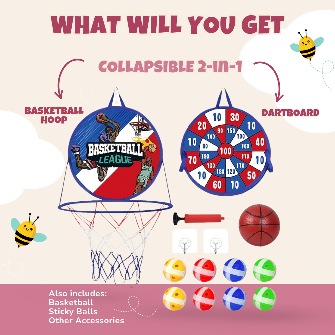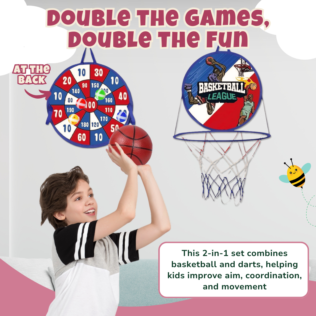 Combining a portable hoop and a dartboard, this 2-in-1 set offers a dynamic play experience. The collapsible design allows for quick setup and storage, making it easy to bring the fun indoors or outdoors. Equipped with suction cups, the dartboard stays securely in place on smooth surfaces. The basketball hoop’s compact size is ideal for younger players, encouraging motor skill development. Each piece is crafted from durable materials to withstand energetic play sessions. With a vibrant color scheme and thoughtful construction, this toy brings hours of versatile entertainment for growing athletes.