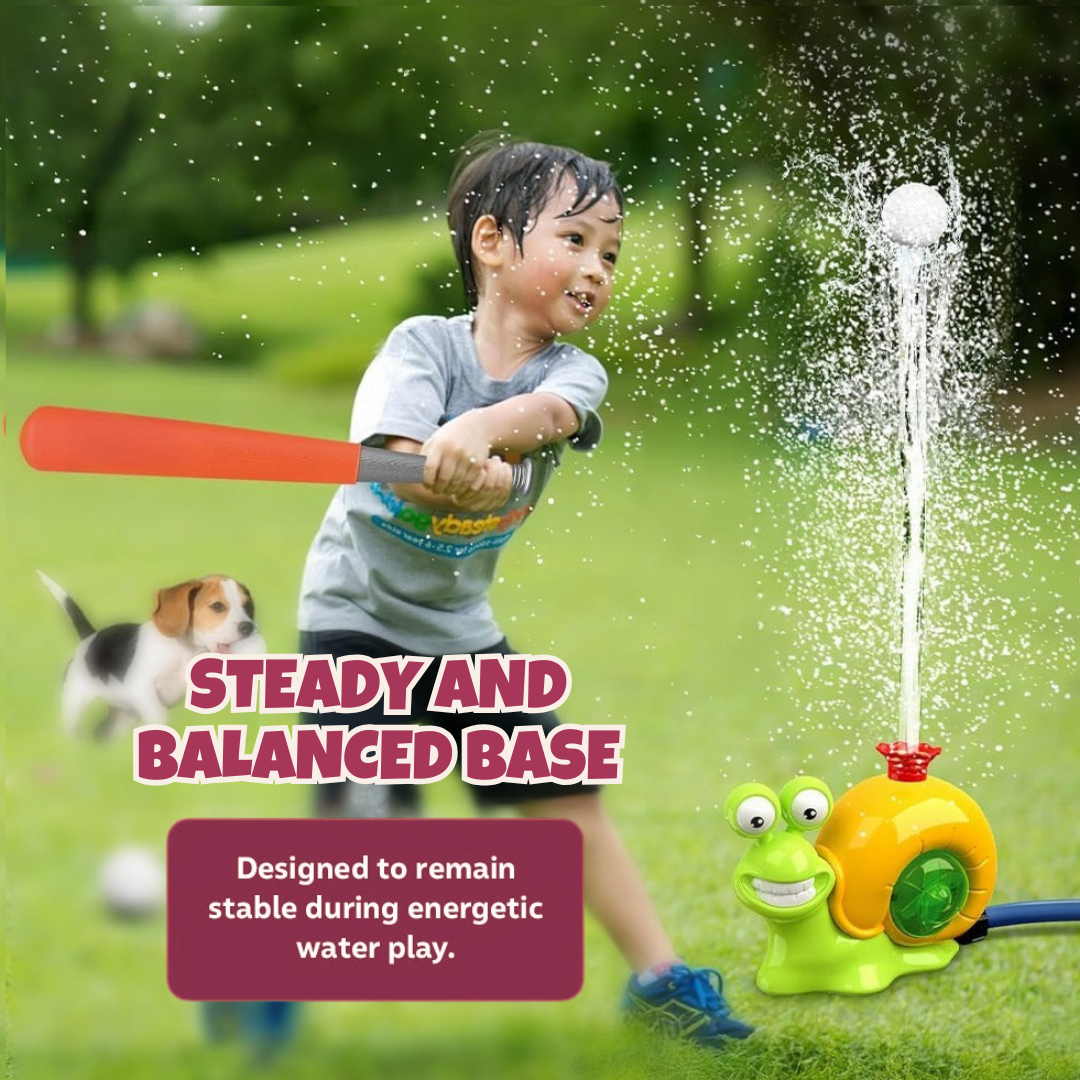 To encourage group interaction and outdoor activity, the toy blends two distinct functions in one object, giving children a sports game and a sprinkler in a single setup. Rather than switching toys or setups, one base supports both activities. As the water flows, coordination improves naturally through batting and dodging movement. This solution reduces clutter, saves storage space, and turns one hose hookup into a backyard centerpiece. Designed for maximum interactivity during warmer months, this toy helps solve the common issue of outdoor engagement by merging movement with water play.