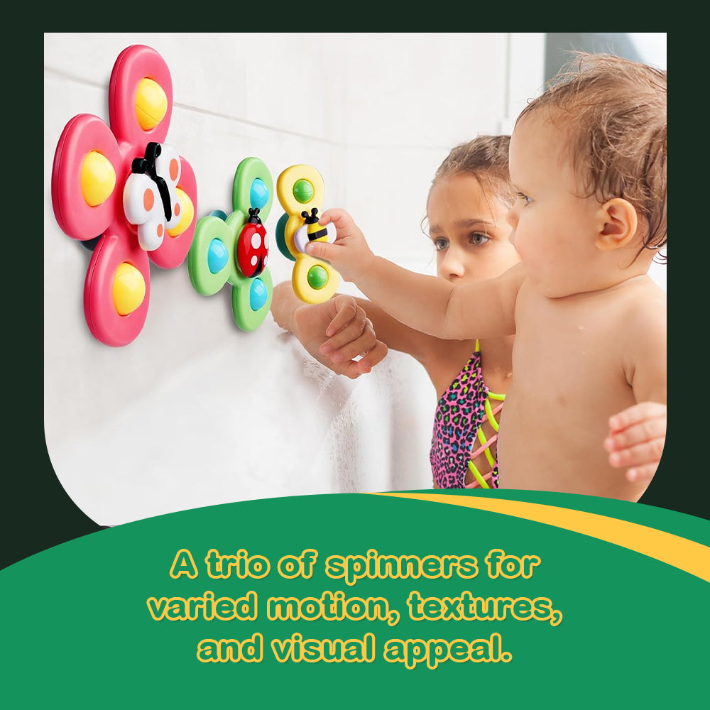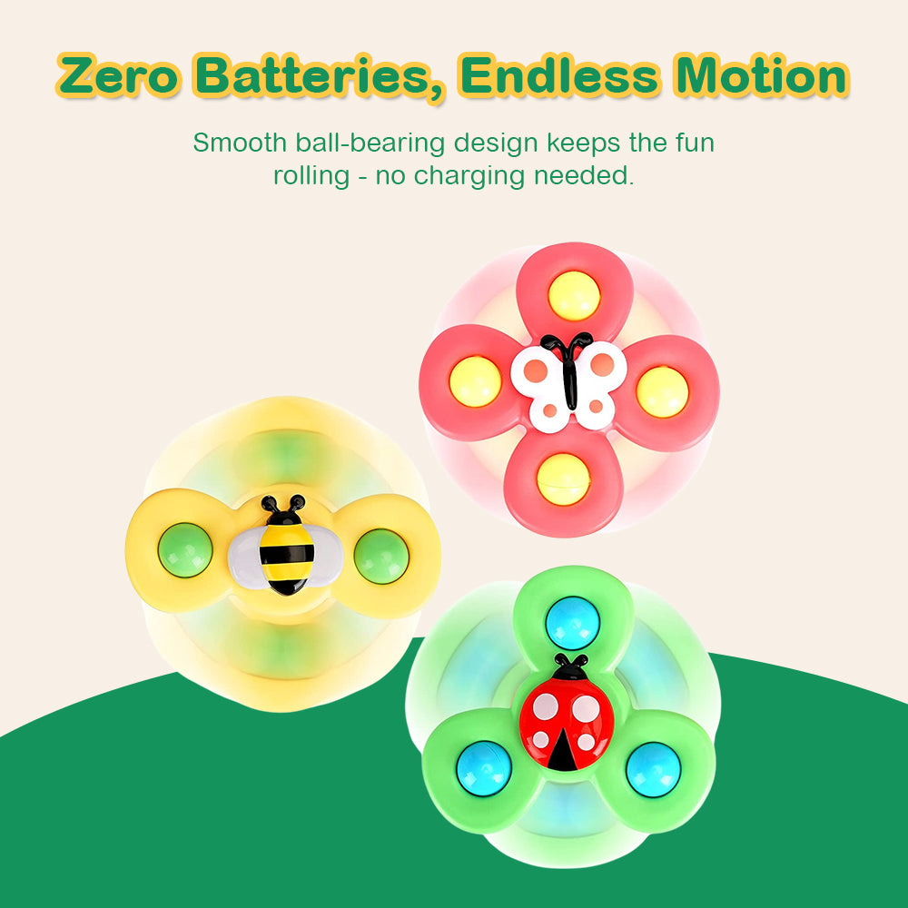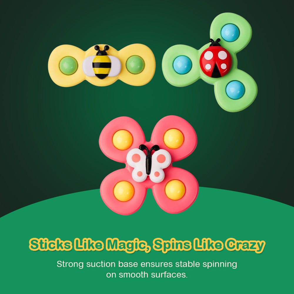 3 Baby Suction Spinner Toys Rotating Sensory Animal Set