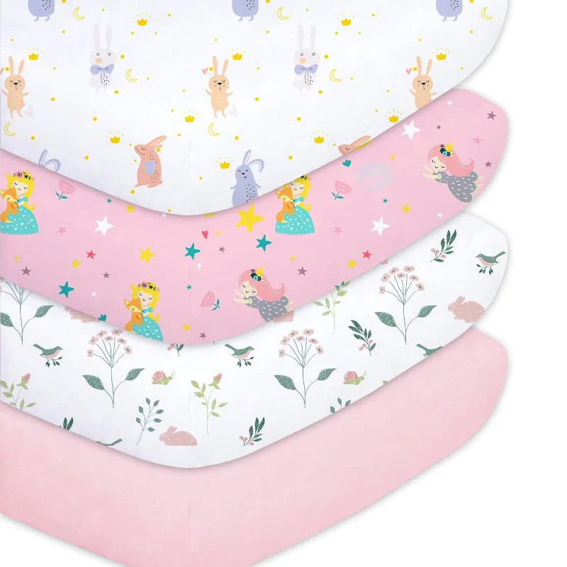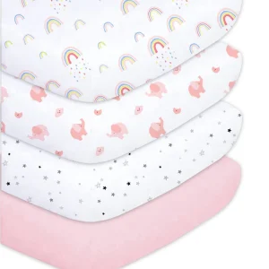 This 4-pack includes various colors and prints. Each print is applied with fade-resistant color to retain brightness over time, even after multiple wash cycles. The variety of patterns gives parents options to rotate while matching different nursery themes. Each sheet is cut and sewn for consistent alignment of patterns. Designed as a set, they provide both playful and simple looks for changing room layouts.