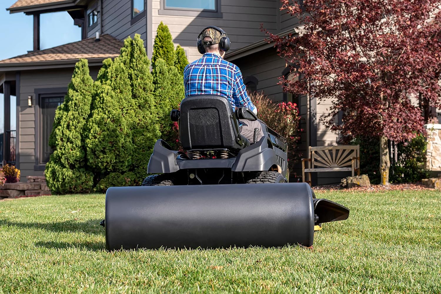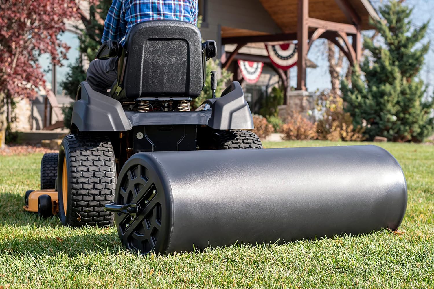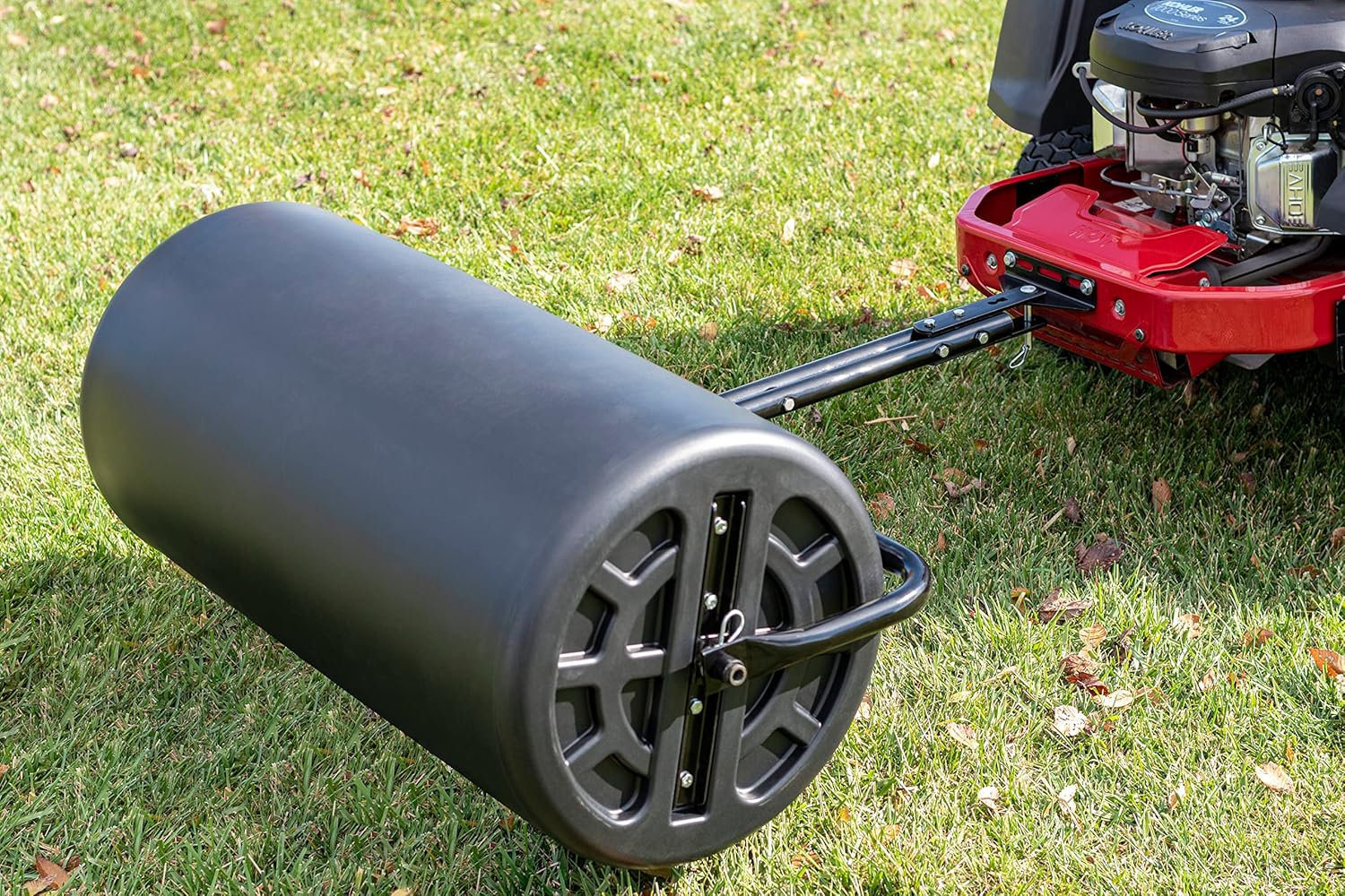- 550 lbs weight with water to help flatten uneven grass and level new soil in 48″ wide swaths