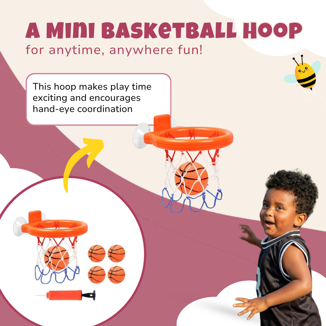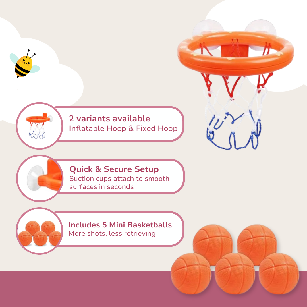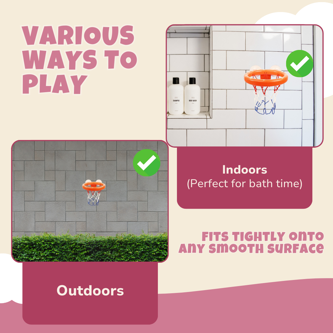 Mounted on smooth bathroom walls or glass, this mini basketball hoop turns bath time into playtime. Designed for little hands, it features a sturdy frame and suction cups that ensure a firm grip. With five lightweight balls included, kids can practice dunking and shooting from any angle. The inflatable rim variant adds extra versatility, letting you set it up just about anywhere. A durable backboard prevents splashing, while the compact size makes it easy to store after use. This product redefines bath-time fun with its functional and well-thought-out design.