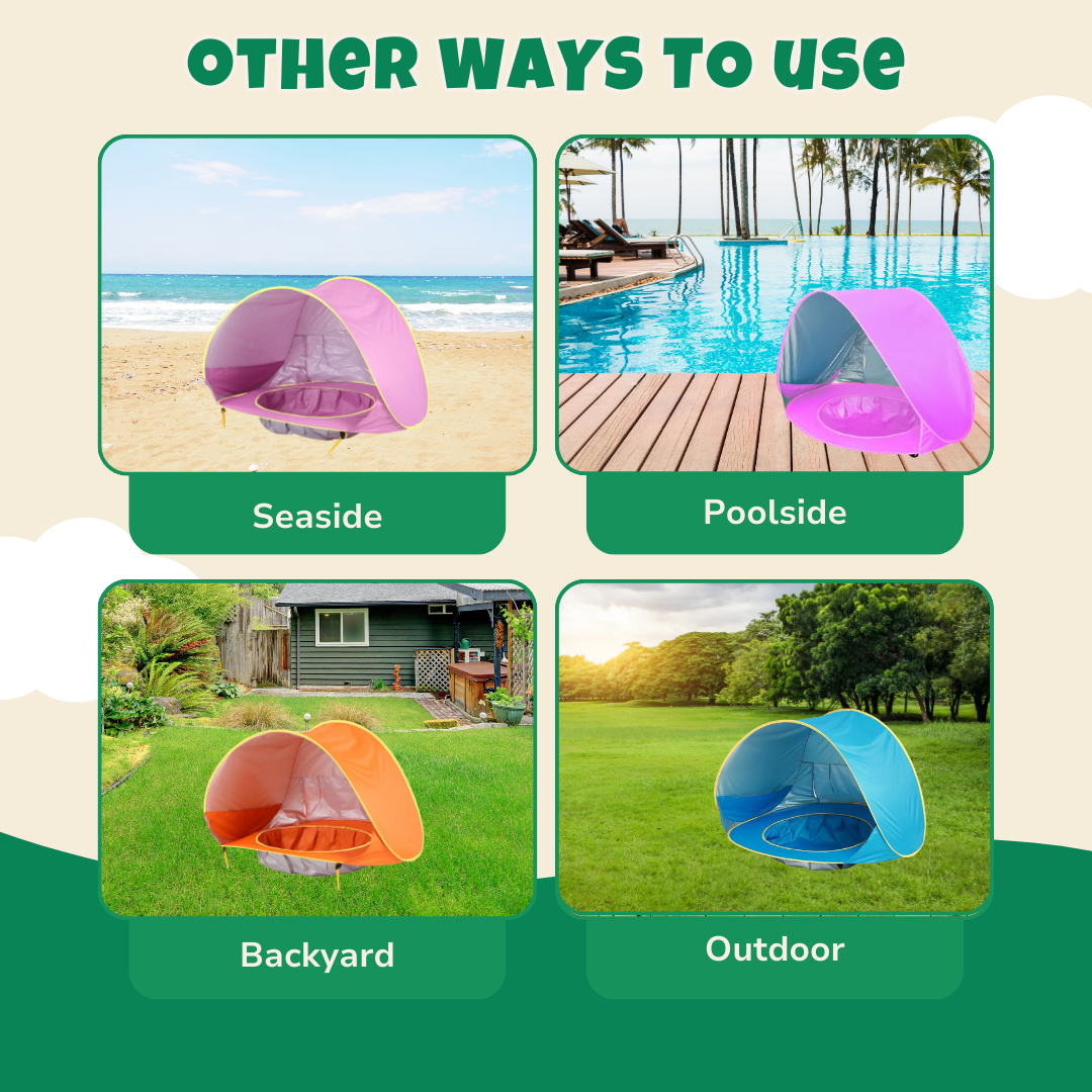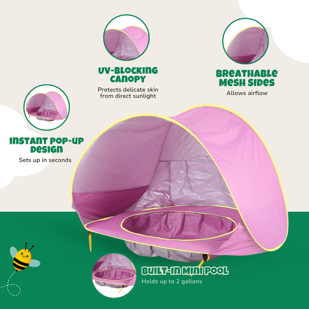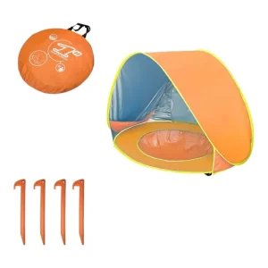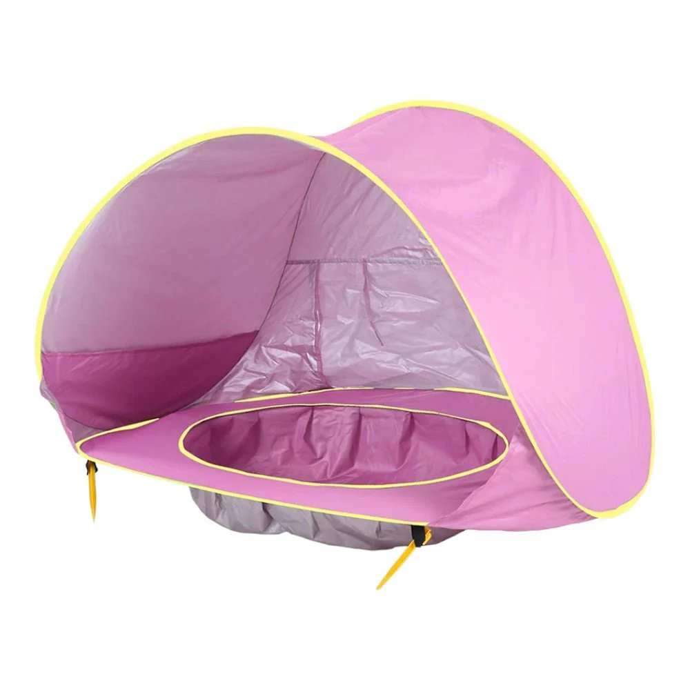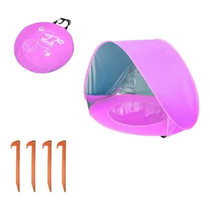 Designed for little adventurers, this pop-up beach tent features a built-in mini pool. Fill the recessed base with water, creating a shallow splash zone perfect for cooling off. Made from lightweight, breathable fabric, the canopy blocks harsh sun rays while allowing airflow. Folding in seconds, the compact design fits effortlessly into travel bags. Reinforced with flexible fiberglass poles, it maintains stability on sandy shores. Available in blue, pink, and orange, it suits every style.