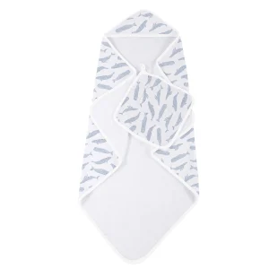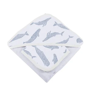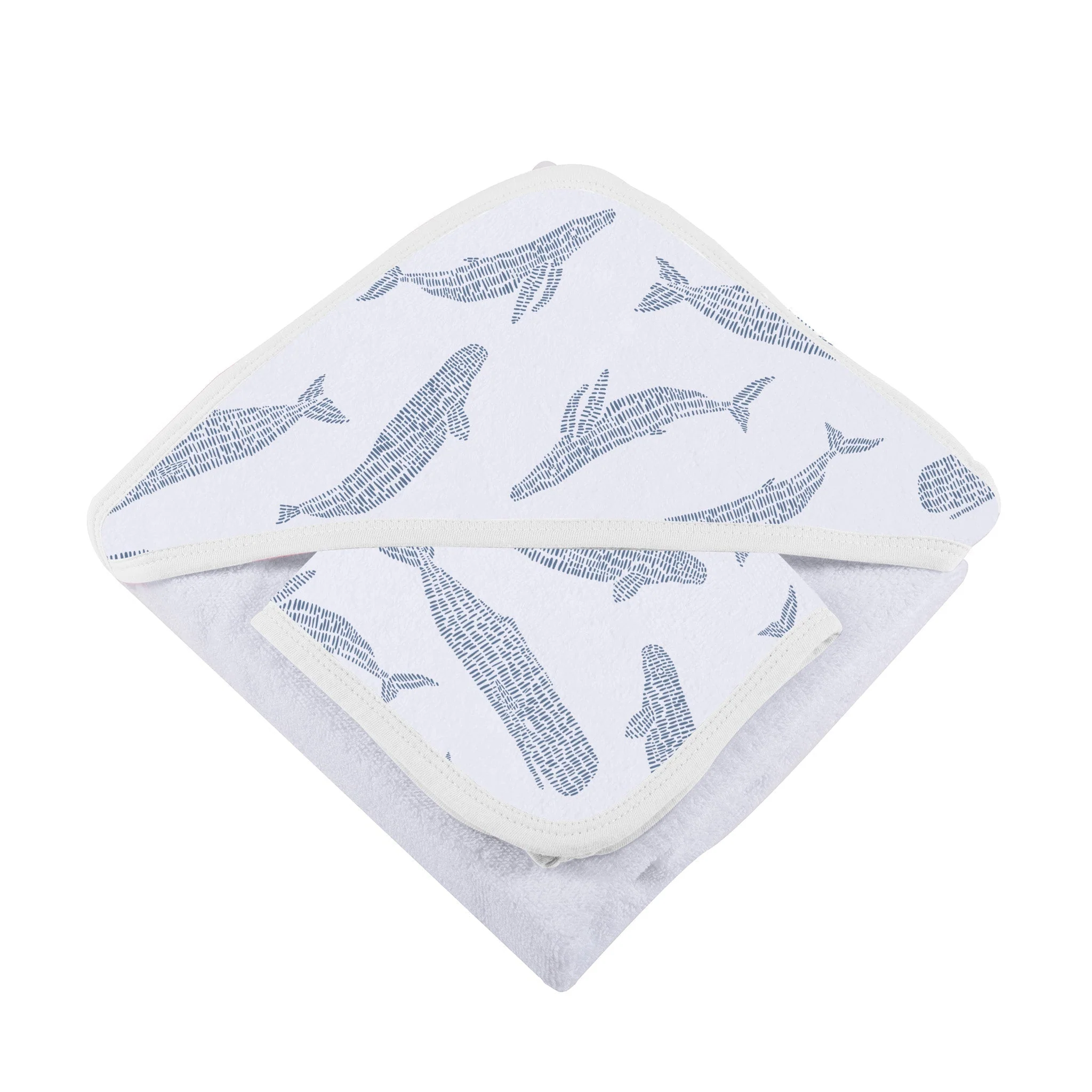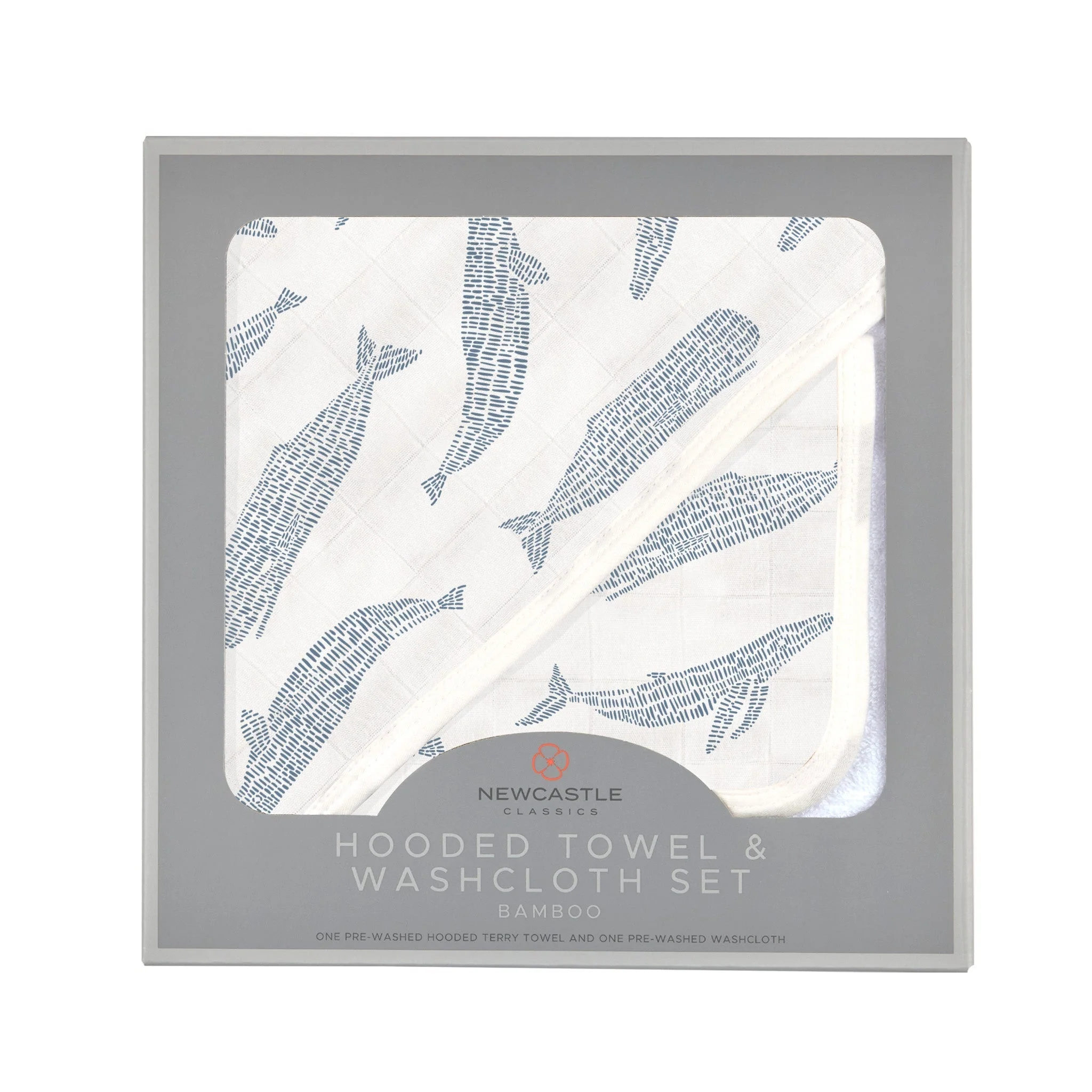 Blue Shadow Whales Bamboo Hooded Towel and Washcloth Set