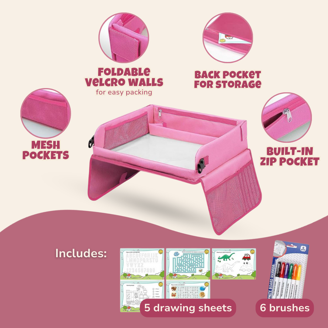 Children’s Travel Tray with Washable Drawing Board & Storage