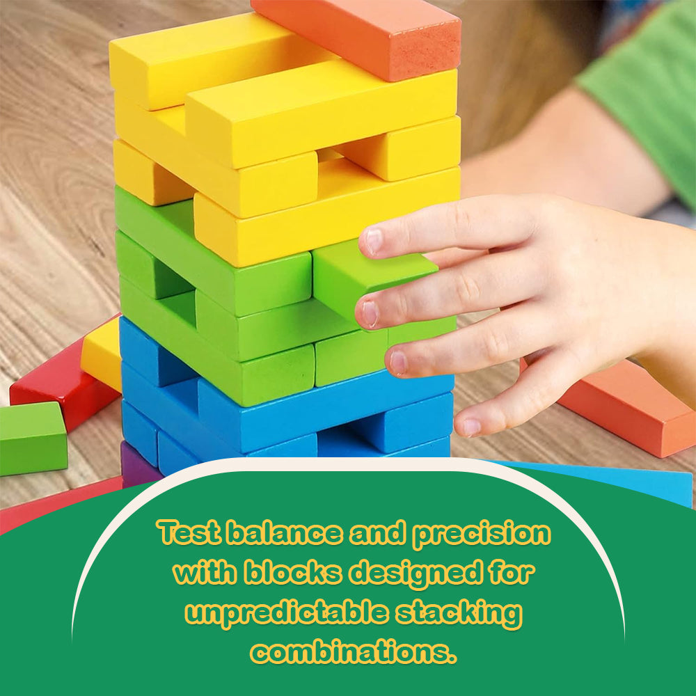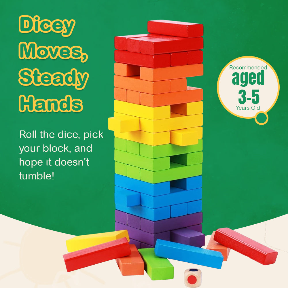 Removing blocks without toppling the tower isn’t the only way to use this versatile set. Players can line them up for chain reactions or build small structures beyond the traditional tower. The included dice adds an extra level of challenge, encouraging decision-making and patience. Perfect for group play, this game encourages hand-eye coordination while keeping participants engaged. The blocks’ uniform size allows for a variety of custom setups. Whether played solo or with friends, the possibilities extend far beyond a single method of use. Offering both challenge and variety, this game brings a new twist to classic stacking activities.