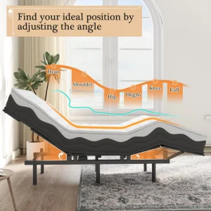 - PERSONALIZED HEALTH EXPERIENCE: The wireless remote control allows the user to adjust the angle of the bed at any time to ensure that it meets the individual’s physical health needs, providing a personalized experience.