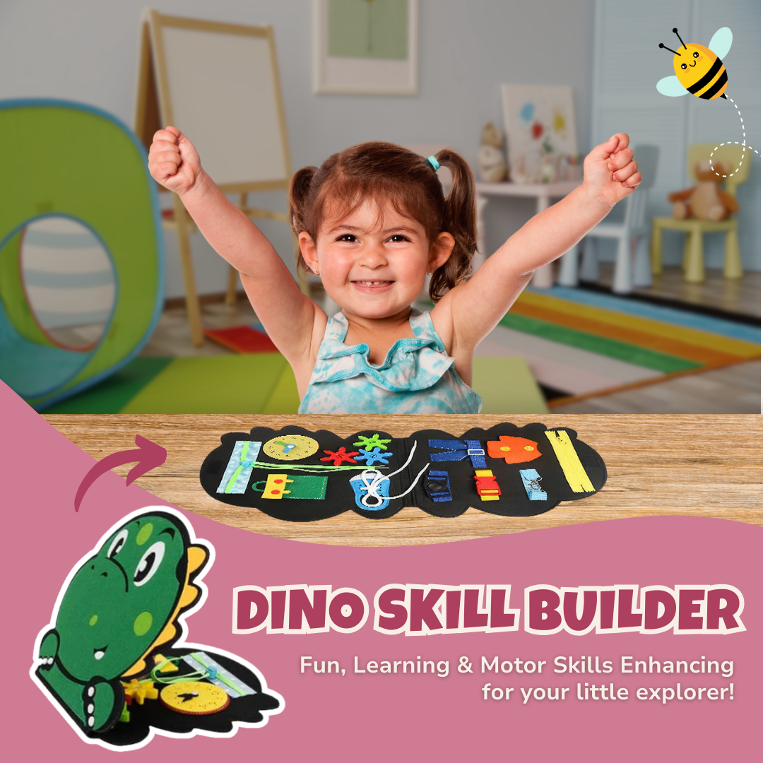 Equipped with an array of tactile challenges, the board includes snap closures, zippers, and push-buttons to refine dexterity. Each element mimics real-world fasteners, helping children practice daily dressing skills. With soft edges and a well-balanced weight, it provides a comfortable grip during use. The dinosaur silhouette adds an engaging visual element, ensuring excitement without overstimulation. Whether used in the car or at home, it remains an ever-evolving challenge for young learners. Vibrant colors make it visually appealing while also reinforcing color recognition.