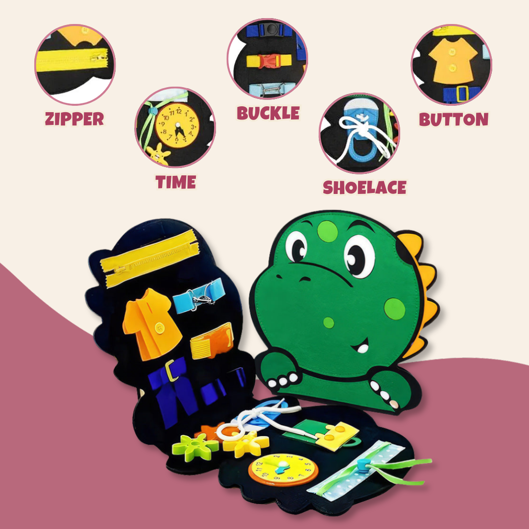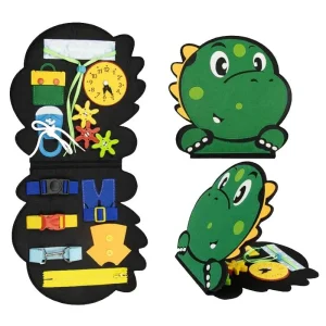 Equipped with an array of tactile challenges, the board includes snap closures, zippers, and push-buttons to refine dexterity. Each element mimics real-world fasteners, helping children practice daily dressing skills. With soft edges and a well-balanced weight, it provides a comfortable grip during use. The dinosaur silhouette adds an engaging visual element, ensuring excitement without overstimulation. Whether used in the car or at home, it remains an ever-evolving challenge for young learners. Vibrant colors make it visually appealing while also reinforcing color recognition.