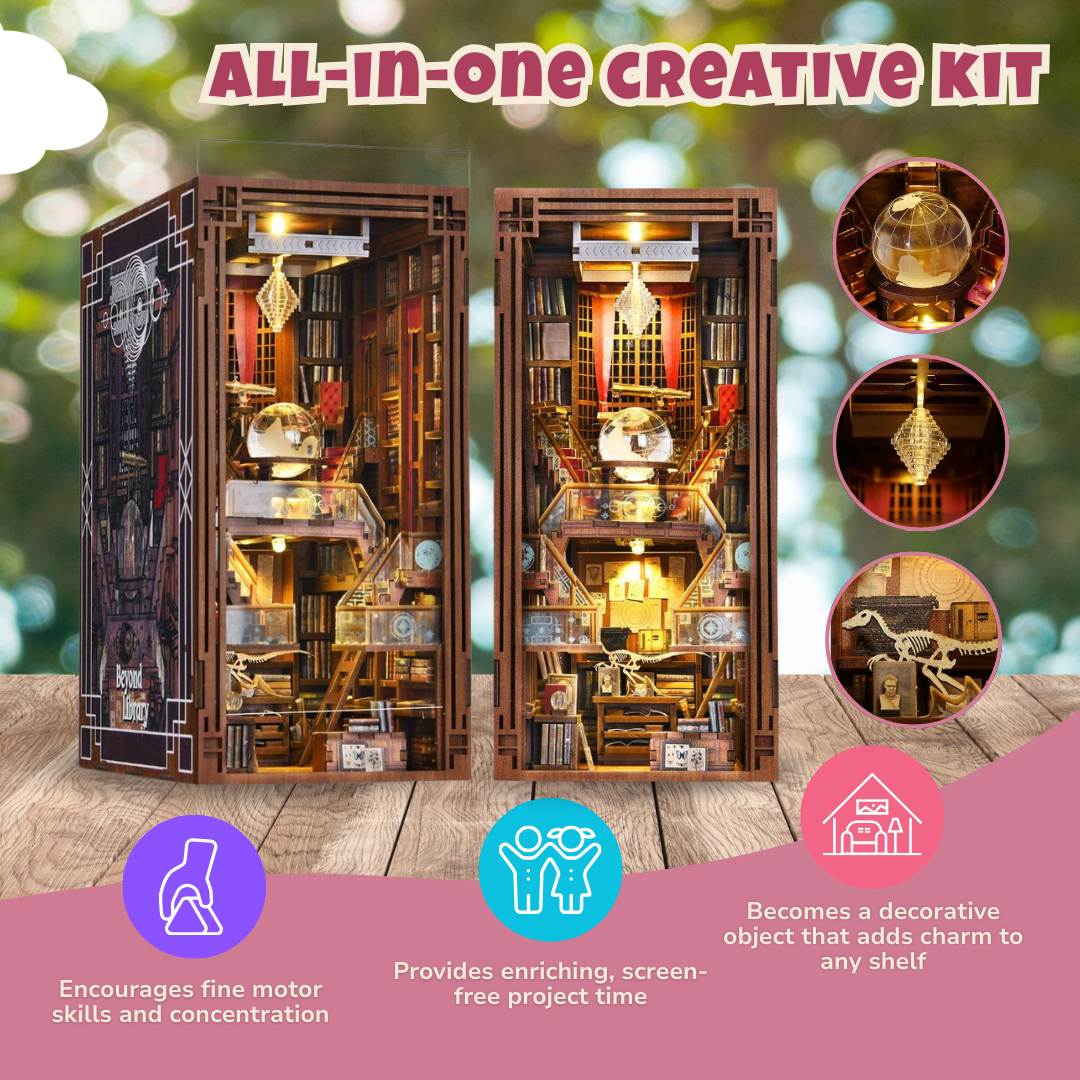 Build a piece of art that’s both personal and functional. The easy-to-follow instructions make assembly enjoyable, while the finished piece adds character to any shelf. Once complete, the sturdy structure doubles as a bookend, keeping your volumes in place and turning heads with its charming details. By combining form and function, this booknook offers a simple solution to shelving organization while providing a unique, handmade display. It’s a project that lets you celebrate literature and showcase your handiwork.