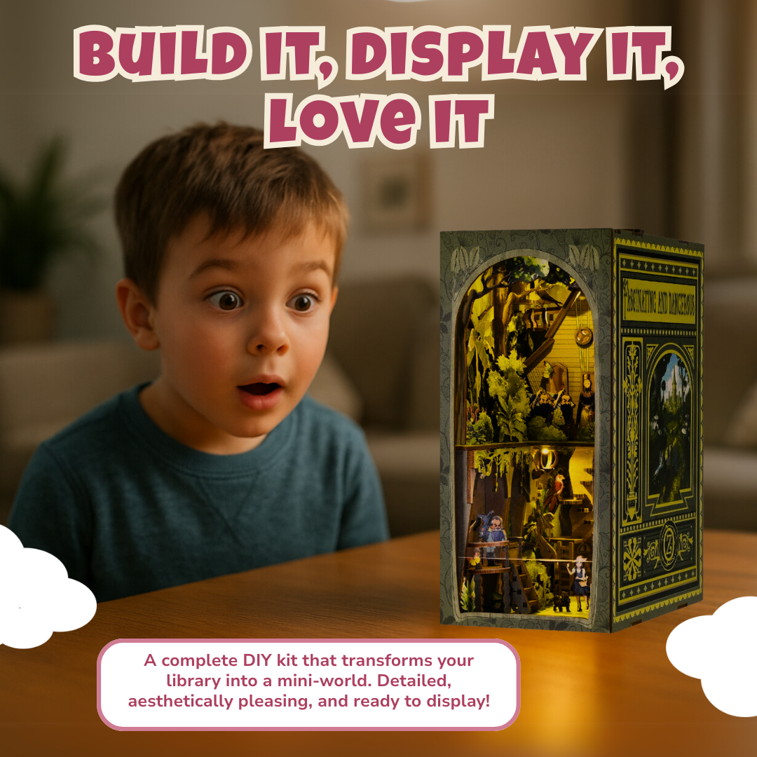 Choose between two distinct themes: the tranquil charm of a library or the whimsical adventure of Dorothy’s journey. Each kit includes unique, pre-painted details that set the scene. From tiny spines of classic novels to intricate props that evoke beloved tales, these booknooks capture your favorite stories in three dimensions. The library version features a warm, cozy aesthetic, while Dorothy’s theme brings bright, cheerful elements. No matter your preference, the kit provides everything needed to bring these delightful literary scenes to life.