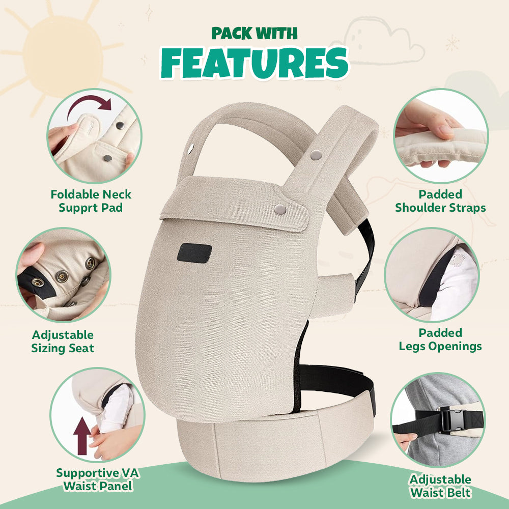 Long outings or short errands, this carrier makes everything easier. With lumbar support that reduces back pressure, extended wear feels effortless. The waist belt, crafted from firm yet flexible material, helps distribute weight effectively. Multiple carrying positions, including front-facing and inward-facing, adapt to different needs. Machine-washable fabric keeps maintenance simple.