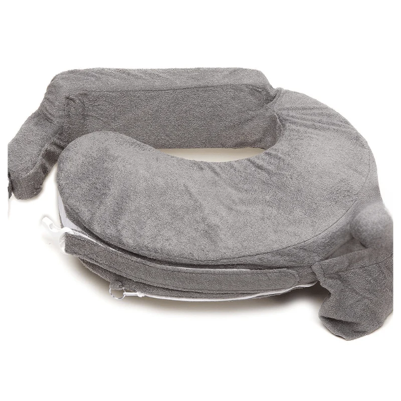 A removable slipcover adds softness while holding up well to repeated washes. A built-in side pocket provides space for bottles, cloths, or small accessories, keeping them within reach. Available in solid color options, it fits easily into nursery settings while offering useful detail for parents. Its structure combines wash-friendly care with a dependable build for repeated use. The strap system is designed to adjust quietly, holding the pillow firmly in place without disrupting use.