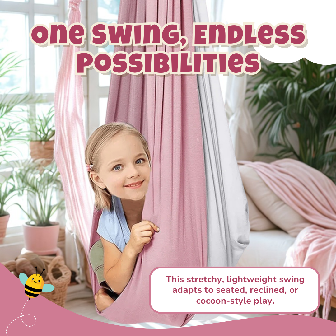 Offering adjustable compression based on how tightly it’s mounted, this swing adapts to different body sizes and postures. The same structure that supports children in movement play also holds adults in static position. Unlike traditional swings, it creates a cocoon-like envelope that wraps the body fully. From temporary sensory breaks to full-body stillness, the swing covers multiple functional scenarios. It delivers flexible support wherever you set it up. It eliminates the need for separate indoor and outdoor gear by remaining compatible with both environments and mounting setups. One unit, one setup, multiple uses.