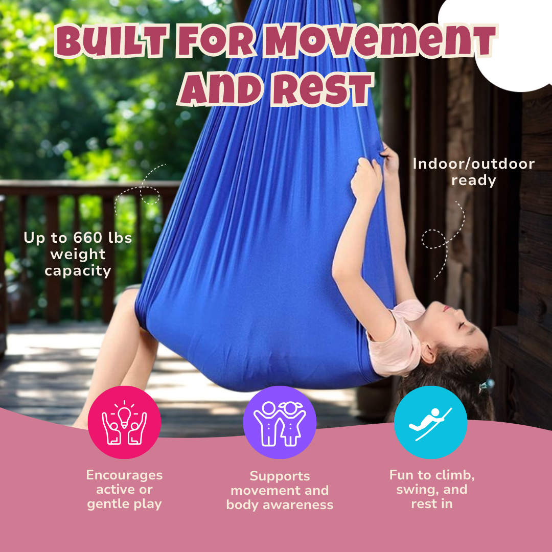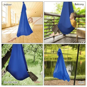 Offering adjustable compression based on how tightly it’s mounted, this swing adapts to different body sizes and postures. The same structure that supports children in movement play also holds adults in static position. Unlike traditional swings, it creates a cocoon-like envelope that wraps the body fully. From temporary sensory breaks to full-body stillness, the swing covers multiple functional scenarios. It delivers flexible support wherever you set it up. It eliminates the need for separate indoor and outdoor gear by remaining compatible with both environments and mounting setups. One unit, one setup, multiple uses.
