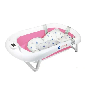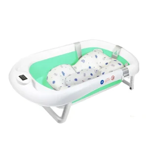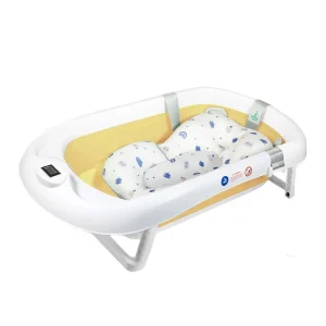 Folding down flat, this extra-large baby bathtub saves space while offering a sturdy design for daily use. The built-in water thermometer gives an accurate reading, avoiding temperature guesswork. Designed with an ergonomic cushion, the bath supports newborns and toddlers alike, preventing slipping during washes. A dedicated head rinse cup ensures gentle, soap-free pours, keeping shampoo away from delicate eyes. With a secure drainage system, emptying is quick and hassle-free. The non-slip base keeps the tub stable on various surfaces, while its durable material resists wear over time. Measuring 32.6 inches in length, this tub accommodates growing babies without feeling cramped. Whether used indoors or outdoors, this tub delivers convenience without compromise.