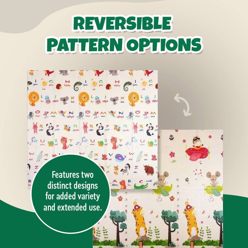 Featuring dual-sided prints, this mat brings two entirely distinct visual setups into one foldable piece. Embossed animal paths on one side promote pattern tracking while the reverse uses soft geometric shapes to support visual discrimination. Designed for long-term use, the XPE foam holds its bounce even after repeated pressure. With edges pressed into a tight seal, the surface resists water, dust, and small crumbs. Folded up, it drops to just 29 x 13 x 3.5 inches, making it compact enough to stash under beds or behind furniture. Opens to a roomy 70.8″ × 59″ with a cushy 0.4″ thickness.
