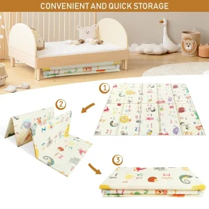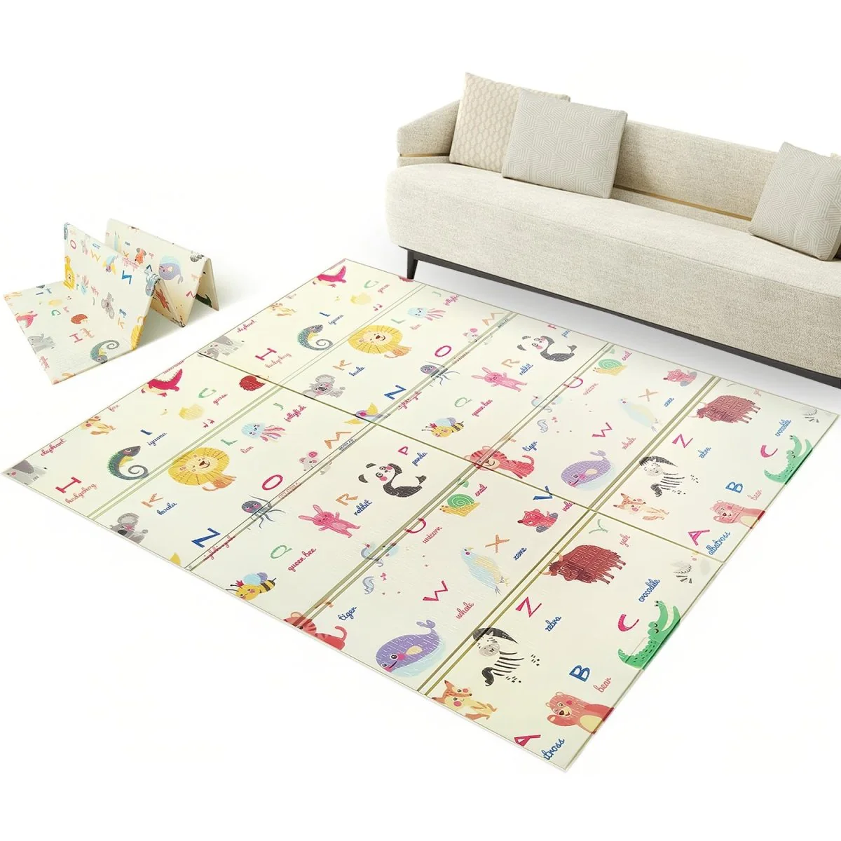 Serving more than one purpose, the mat works as a padded floor space during tummy time, a cushioned base for early walking, and even a picnic surface for toddlers. The layout spans wide, providing generous coverage in compact homes. With its 0.4-inch depth, it holds firm against hardwood floors while remaining flexible enough to fold flat. This product solves the issue of bulky, rigid play carpets by offering a full-size mat that vanishes into storage after use.