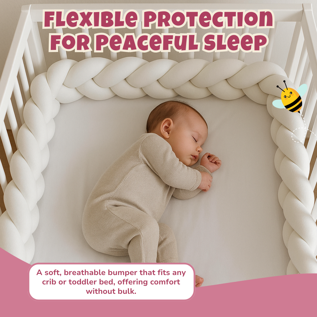 Beyond its practical function, this braided bumper enhances any nursery with a sleek, modern aesthetic. Available in multiple colors, it integrates effortlessly into various decor styles. Its adaptable design allows multiple uses serving as a crib border, a twisted support pillow, or a decorative accent. The soft, lightweight structure makes repositioning simple, whether for style or function. Built for convenience, the fabric resists wear and remains easy to clean, maintaining a fresh look over time.
