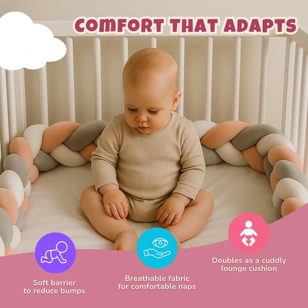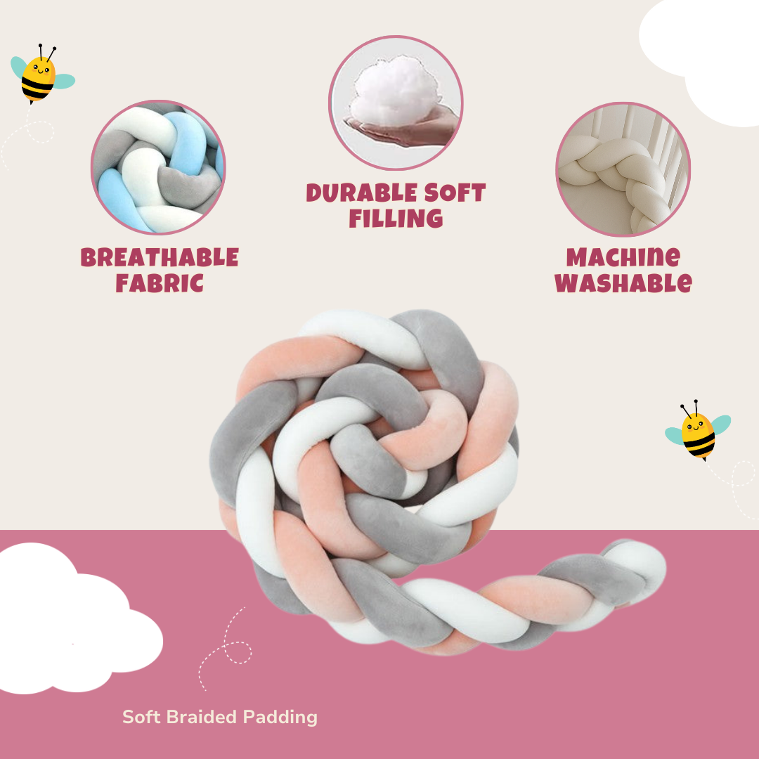 Beyond its practical function, this braided bumper enhances any nursery with a sleek, modern aesthetic. Available in multiple colors, it integrates effortlessly into various decor styles. Its adaptable design allows multiple uses serving as a crib border, a twisted support pillow, or a decorative accent. The soft, lightweight structure makes repositioning simple, whether for style or function. Built for convenience, the fabric resists wear and remains easy to clean, maintaining a fresh look over time.