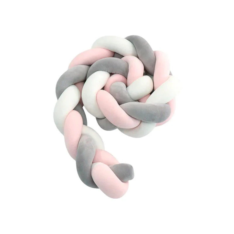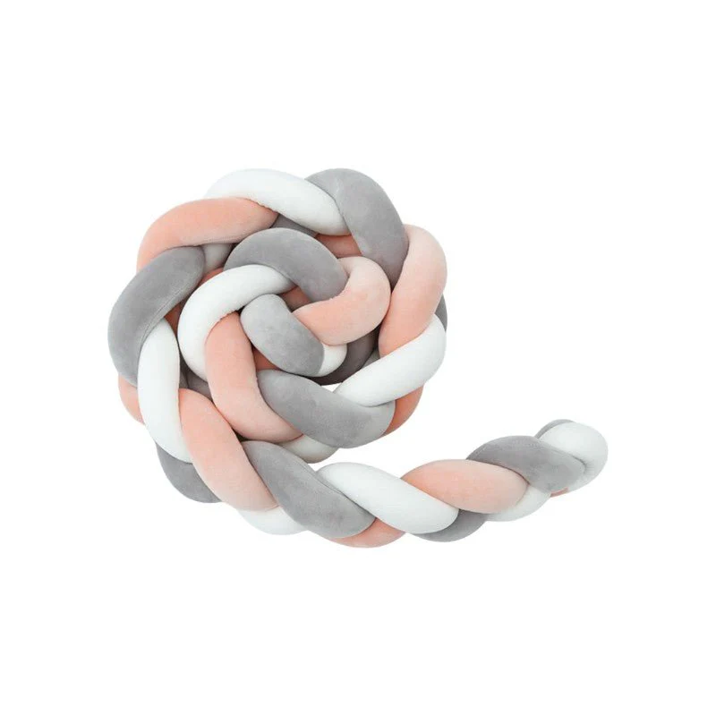This braided crib bumper features a plush protective layer that ensures a snug and adaptable fit. The interwoven design provides gentle reinforcement for cribs, beds, and play areas, maintaining both structure and flexibility. A seamless, hand-knotted construction enhances durability while allowing effortless adjustments. With a breathable fabric blend, it stays comfortable across all seasons. Designed to fit standard and large cribs, its versatile design suits multiple functions from a protective bumper to a decorative bed accent. This essential nursery piece blends practicality with style, adapting to different needs effortlessly.