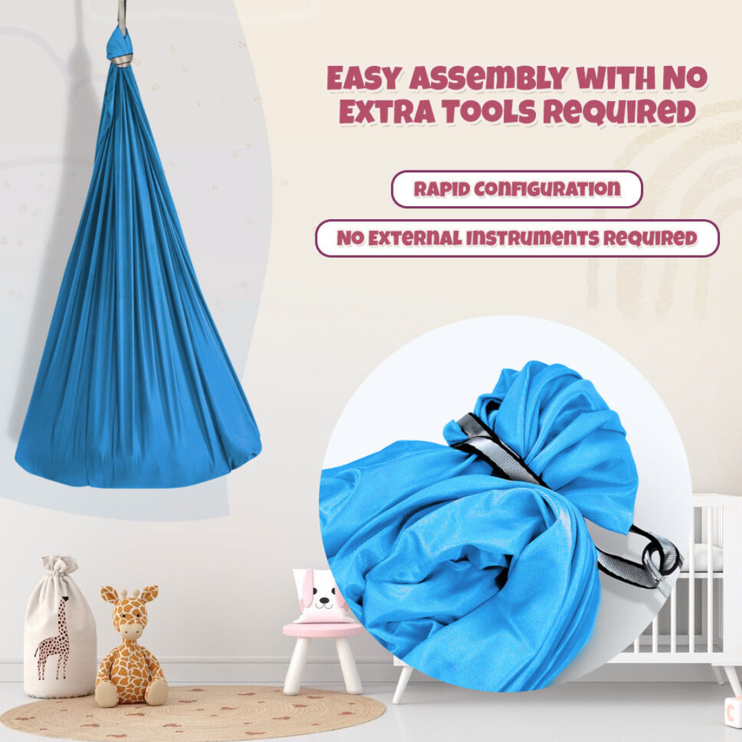 Machine washable at 30°F, the fabric maintains elasticity after dozens of washes without shrinking. The fabric’s moisture-wicking properties allow quick air-drying when hung indoors. Weighing under 2 lbs, the entire kit stores compactly in a drawer or backpack. Resistant to dust retention, the texture remains soft even after prolonged indoor hanging. With four color-coded edges, it can be folded and tucked in seconds without tangling. For households with multiple users, its durable weave minimizes the wear that often ruins other sensory swings. Finally, a support system that doesn’t turn chaotic after week two.
