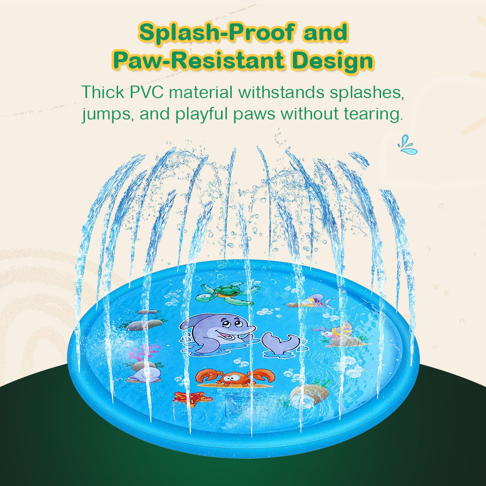 This splash mat is designed for simplicity and durability. The heavy-duty PVC material ensures resilience against regular use and active paws. With a built-in quick-fill valve, the mat inflates rapidly, and the adjustable water jet height caters to different play preferences. The wide edge offers a stable base for splashing, while the foldable design allows compact storage. Its lightweight construction makes it portable for picnics or trips, giving you a versatile water play option wherever you go.