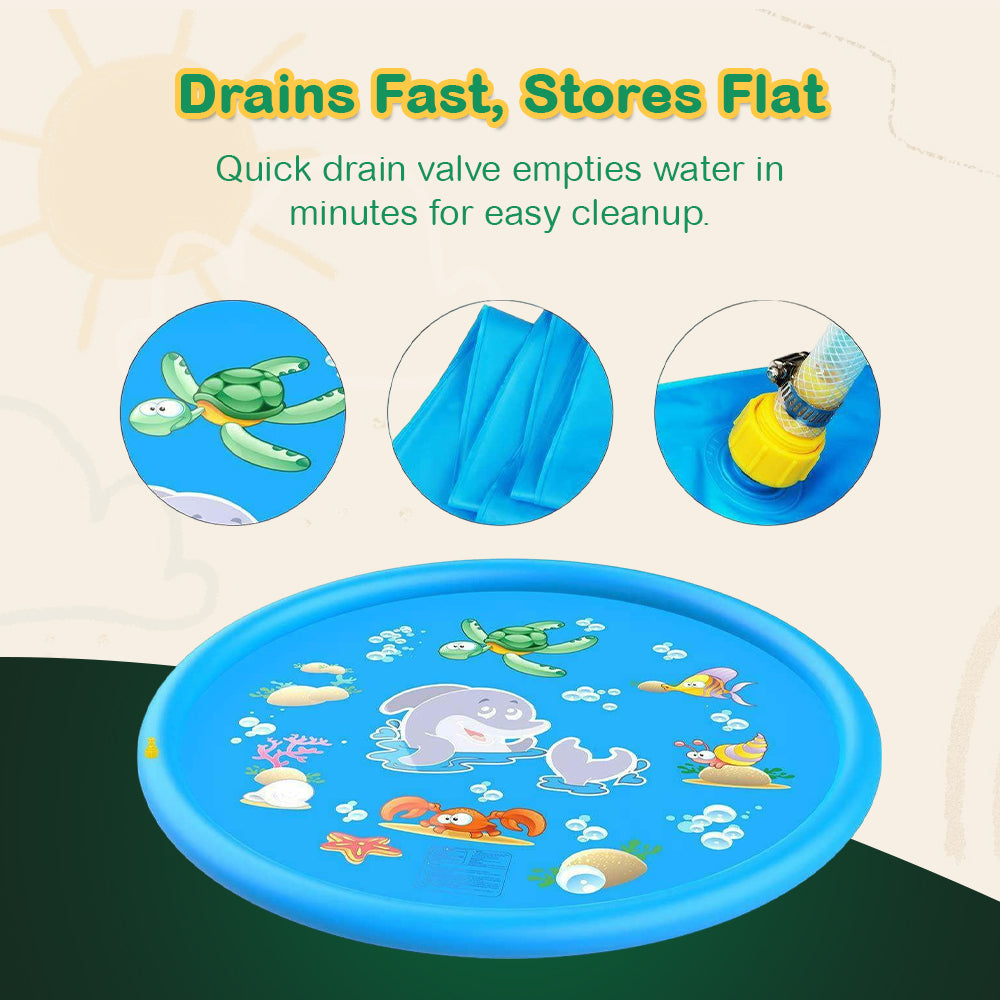 Whether it’s a hot day in the yard or a day at the park, this inflatable splash mat delivers quick, easy, and engaging water play for kids and pets alike. The flexible PVC material is tough enough to handle energetic play and simple to wipe clean. Adjustable water jets let you customize the spray for the perfect level of excitement. Compact and foldable, it’s effortless to transport and store. No matter the occasion, this splash mat offers an instant, refreshing solution to beat the heat and keep everyone entertained.