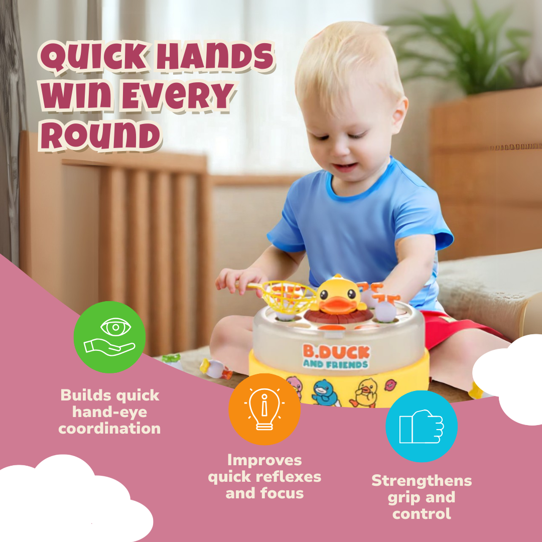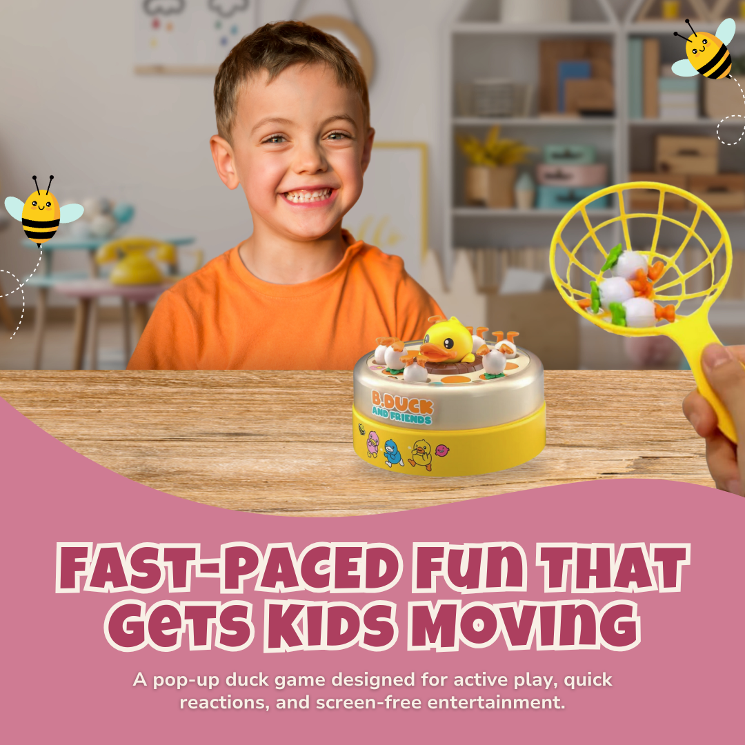 Made from durable plastic, the game set resists knocks and bumps during extended sessions. Each net has a handle length suited for children aged 3 and up, and the base stays still during use. Surfaces are smooth for easy cleaning, and the rounded duck design prevents snagging. With parts sized to avoid swallowing hazards, everything fits back in the box for quick storage. Whether for solo rounds or family matchups, it offers a screen-free alternative to active play. The duck-themed design holds attention even between turns. Music playback remains consistent regardless of motion. Its compact size fits well on tables or play mats.