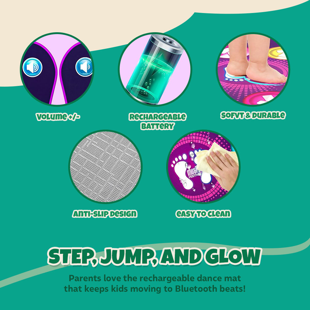 Connecting via Bluetooth, this mat lets kids dance to their favorite songs without being limited to pre-loaded tracks. A rechargeable battery powers the fun, eliminating the need for disposable batteries. Volume control and difficulty settings offer full customization, making it suitable for all skill levels. Switching between game modes is seamless, keeping the experience fresh every time.