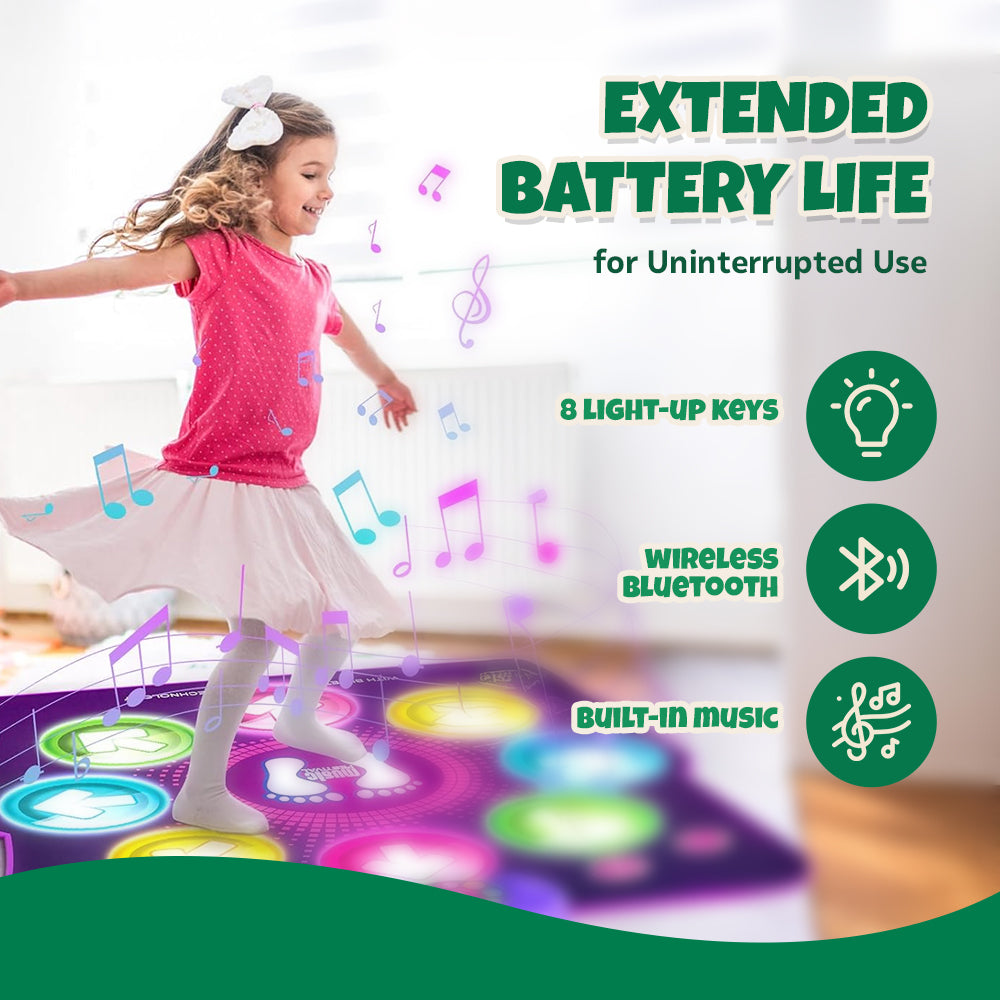 Connecting via Bluetooth, this mat lets kids dance to their favorite songs without being limited to pre-loaded tracks. A rechargeable battery powers the fun, eliminating the need for disposable batteries. Volume control and difficulty settings offer full customization, making it suitable for all skill levels. Switching between game modes is seamless, keeping the experience fresh every time.