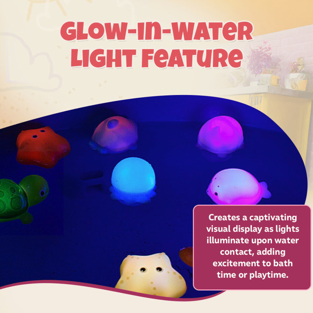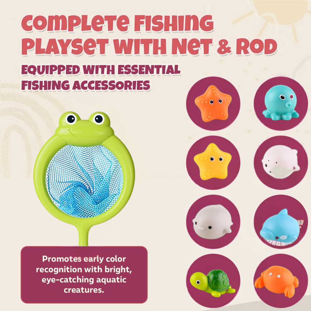 Light-Up Sea Animals Bath Toy Set With Net And Fishing Rod Toddlers