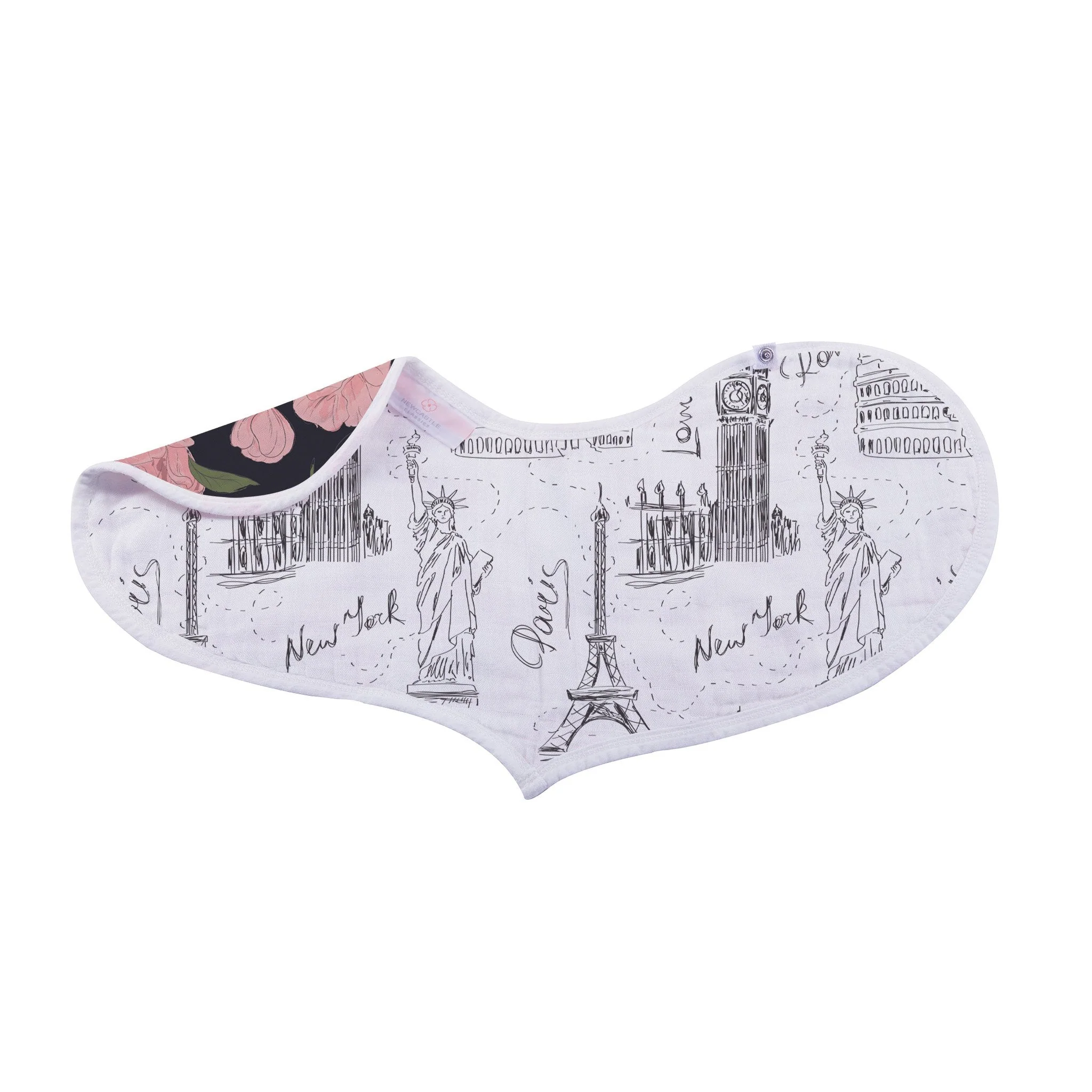 Soft and comfortable 100% natural bamboo muslin. These stylish and easy to care for bibs feature a snap closure. The extra absorbent fabric makes these bibs a must have for feeding and teething.