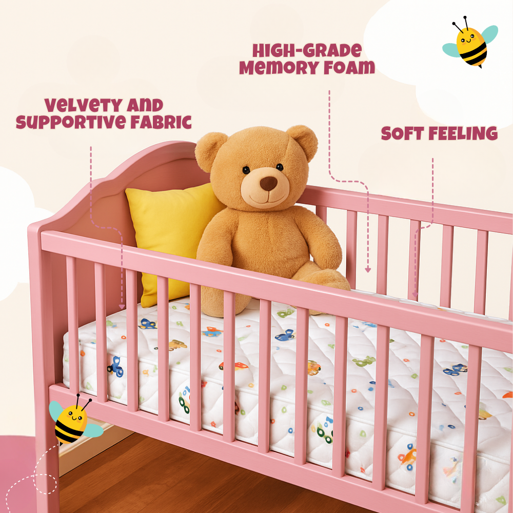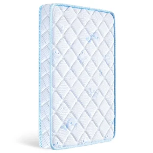 The velvet cover stays soft and smooth while keeping the mattress free from noise that could disturb your baby’s rest. Its breathable construction promotes airflow, while the firm foam base adds stability for safe movement. Whether used for naps or overnight sleep, it creates a cozy and dependable environment.