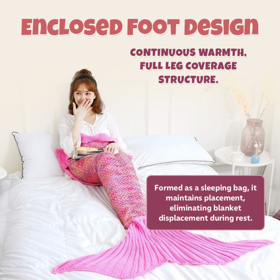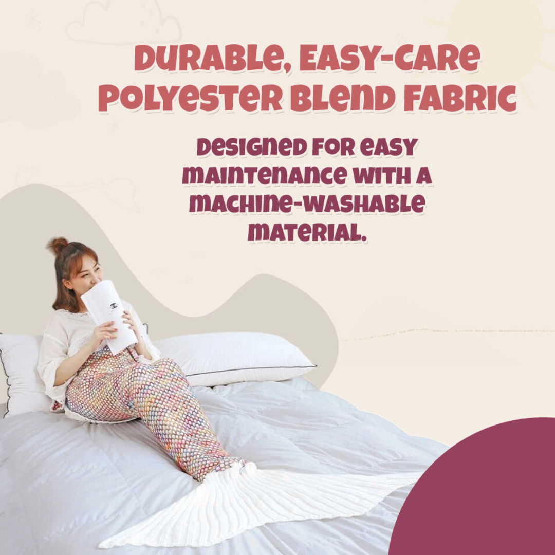 Shaped like a real mermaid tail, this blanket includes stitched fins and defined contours that wrap fully around both legs. Woven using a dual blend of polyester and cotton, the texture resists piling while remaining breathable. Constructed as a sleeping bag, the design prevents the blanket from slipping off during sleep. Featuring a wide entry at the top, it allows easy access without stretching out the fabric. Unlike open-style throws, it encloses the feet entirely and maintains warmth without needing extra covers. Designed for toddlers over 2.5 feet tall.
