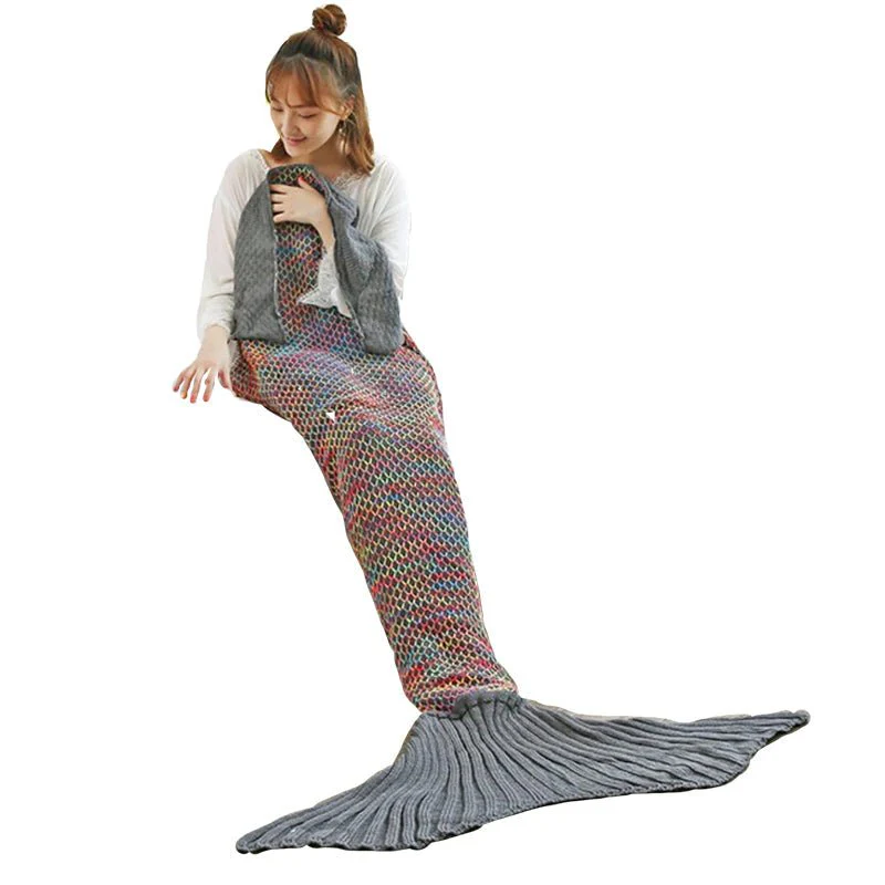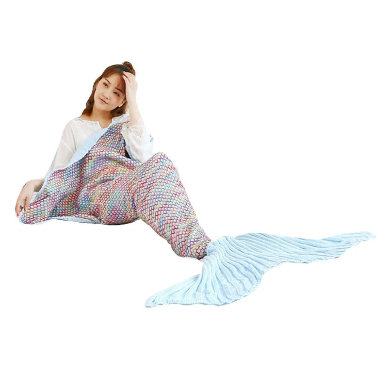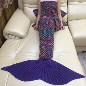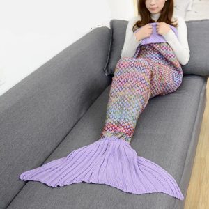 Shaped like a real mermaid tail, this blanket includes stitched fins and defined contours that wrap fully around both legs. Woven using a dual blend of polyester and cotton, the texture resists piling while remaining breathable. Constructed as a sleeping bag, the design prevents the blanket from slipping off during sleep. Featuring a wide entry at the top, it allows easy access without stretching out the fabric. Unlike open-style throws, it encloses the feet entirely and maintains warmth without needing extra covers. Designed for toddlers over 2.5 feet tall.