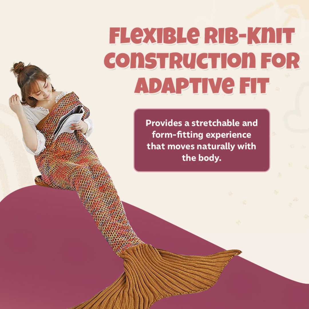 Covering the entire lower body, the tail’s base lets feet wiggle while keeping legs snug in place. Made with reinforced inner seams, it resists tearing during repeated movement. A horizontal rib-knit pattern keeps the outer surface flexible and soft. The compact form helps retain heat without causing overheating during long naps. Easy to fold and store, the blanket remains lightweight despite its layered texture. A structured foot section gives it a defined silhouette, even when not in use. This construction keeps the fabric aligned and prevents bunching.