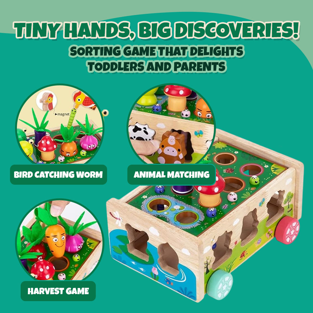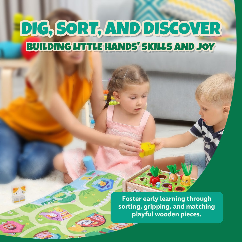 Sorting carrots by size builds logical sequencing, and pulling them out requires wrist rotation that stimulates motor coordination. Designed for repetition, this activity builds pattern recognition in stages through shape variation and animal pairing. For classrooms and households, this compact setup reduces clutter with built-in storage, keeping everything contained. By combining stacking, matching, and grabbing in one set, this toy eliminates the need for multiple playsets. Through simplicity in form, it addresses a common need: combining skill practice with self-guided engagement.