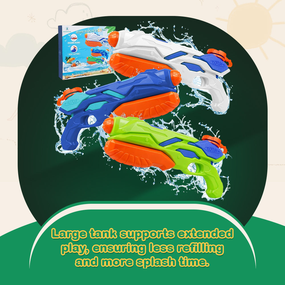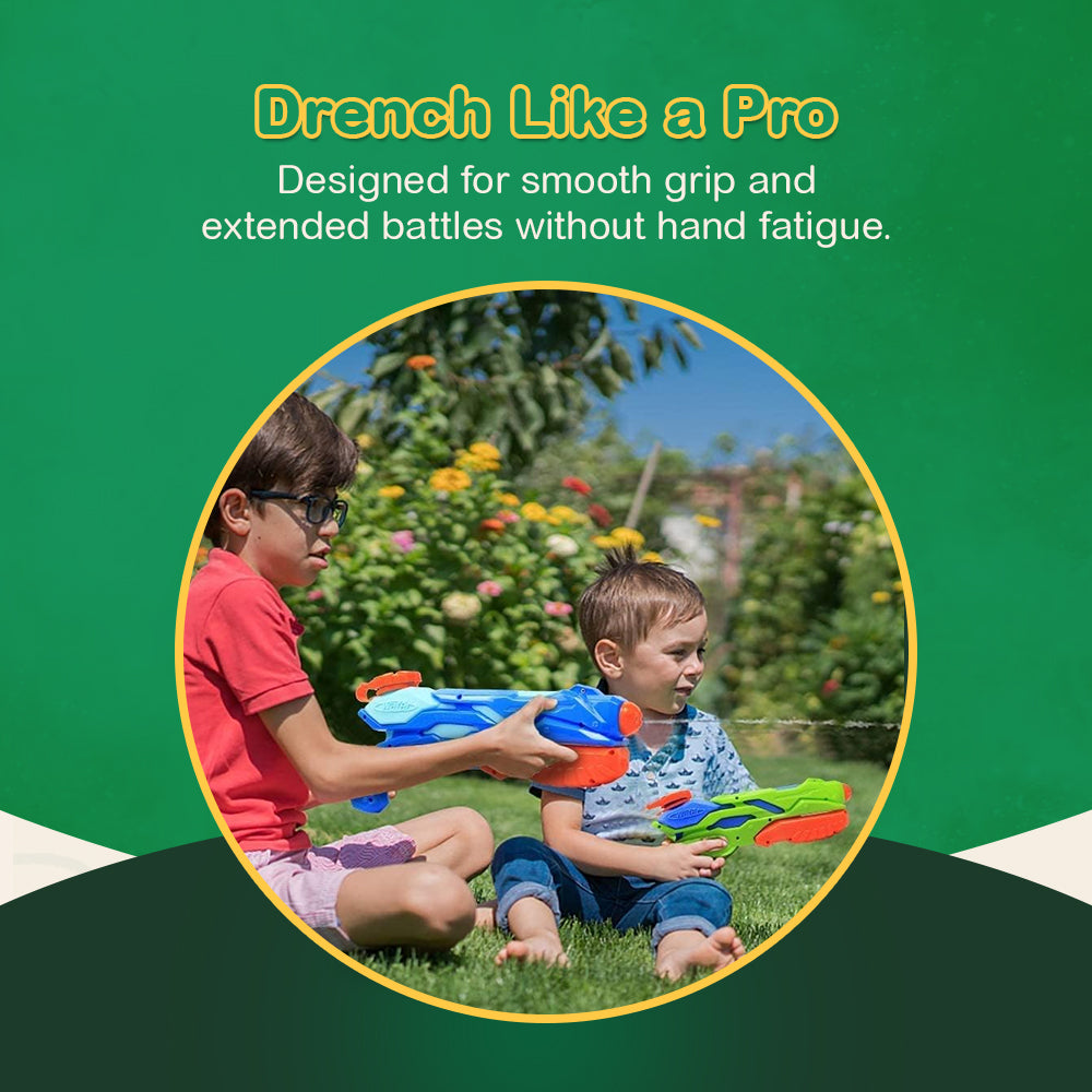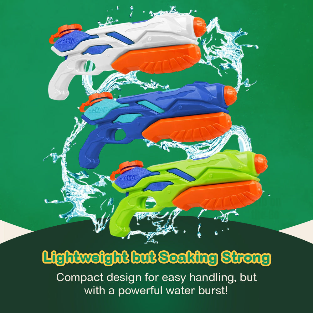 Designed with a 750ml reservoir, this water gun offers a longer, uninterrupted playtime. Its precision nozzle ensures a powerful jet stream that easily reaches distances between 6 and 10 meters. The compact, lightweight construction makes it easy to handle for both kids and adults. Crafted with durable, impact-resistant materials, the water gun withstands outdoor adventures at the pool or beach. Additionally, it comes in a vibrant trio of colors green, blue, and white making it easy to pick your favorite or share with friends.