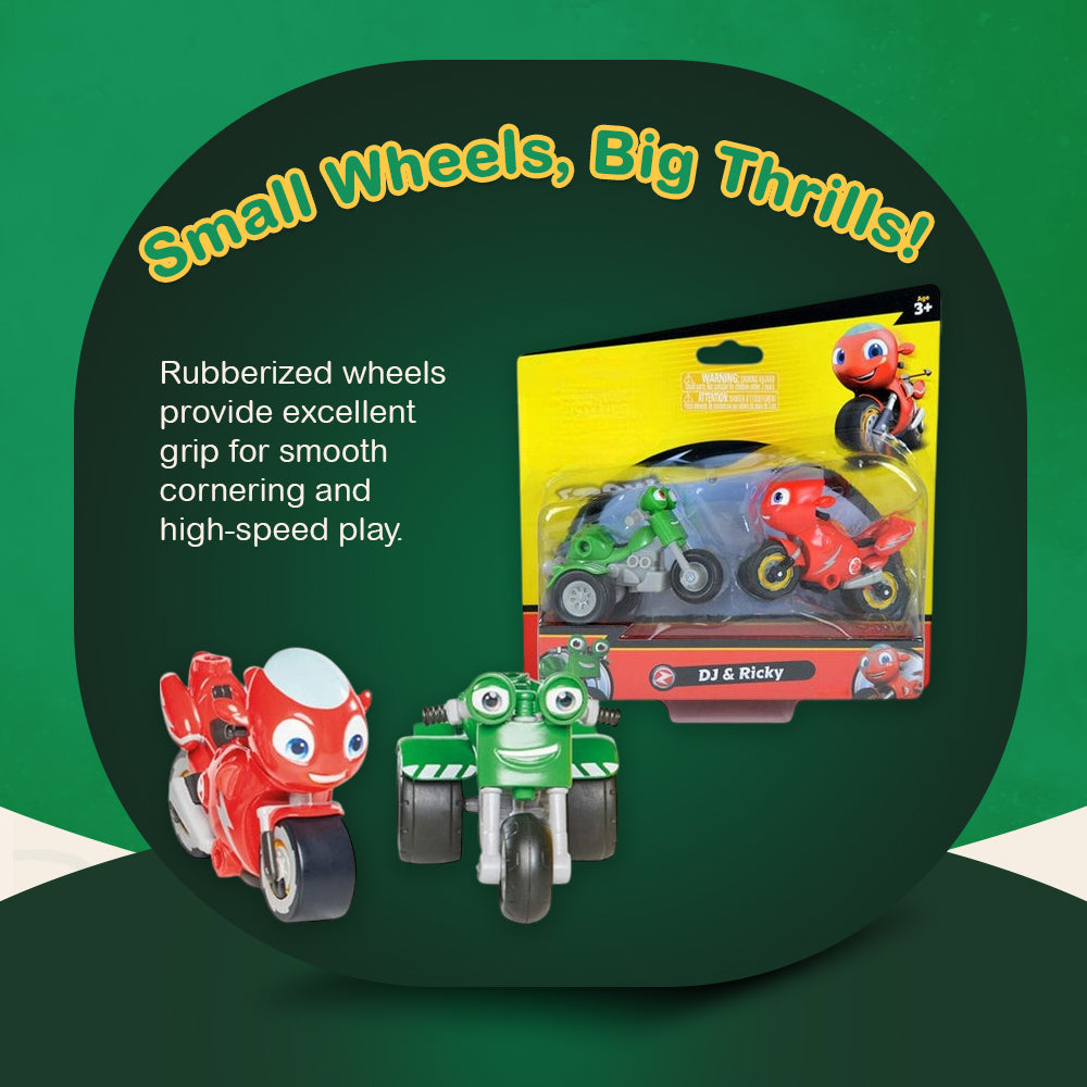 Featuring dynamic motorcycle figures and interactive playsets, this collection brings speed, sound, and transformation to every race. The Ricky & DJ duo includes articulated figures designed for action-packed stunts. A transforming trailer shifts into a ramp, launching bikes into high-speed chases. Lights and authentic sound effects enhance the experience, while the super loop playset delivers gravity-defying spins. This toy is suited for kids aged 3+.