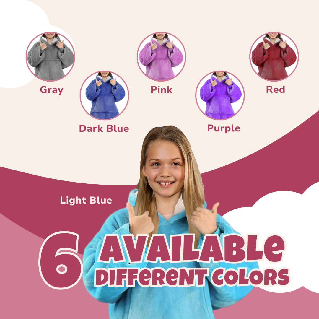 Oversized Kids Hoodie Blanket with Front Pocket, Soft Polyester