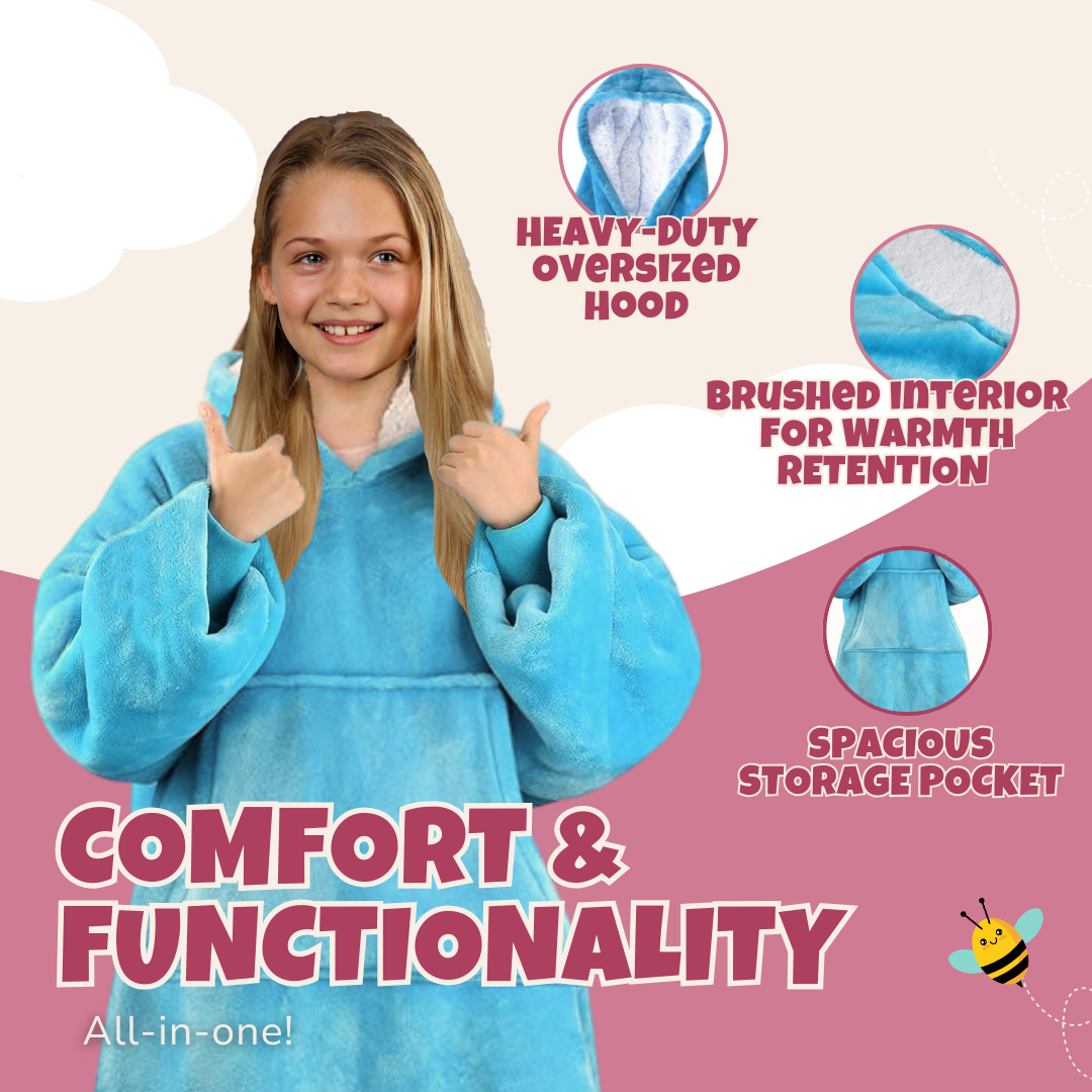 Oversized Kids Hoodie Blanket with Front Pocket, Soft Polyester
