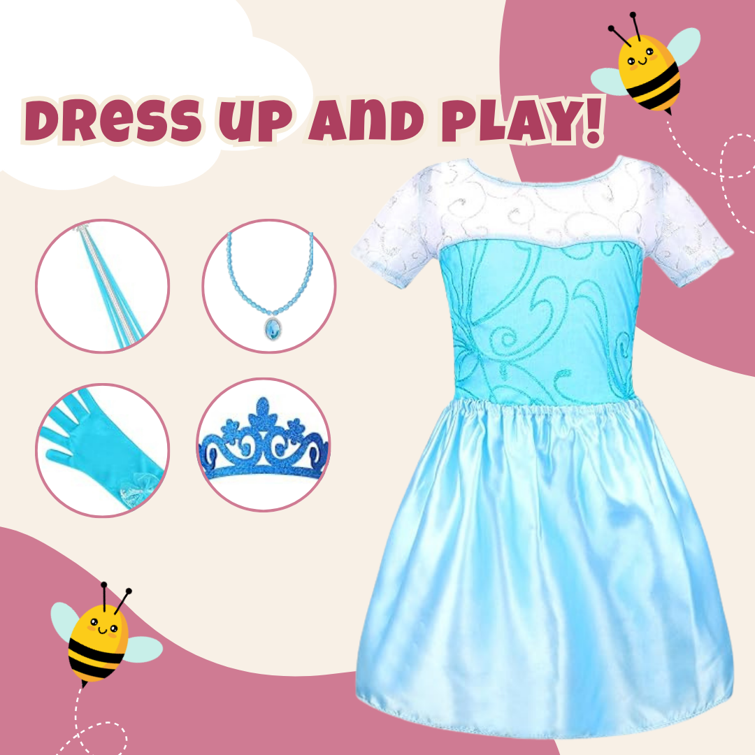 Mix pieces to switch characters, share roles, and stage short scenes with siblings or friends. Wands, wings, and crowns add finishing touches without tiny loose parts. Repeat actions like clip, tie, and snap to support early dressing skills. Headbands sit securely and match the outfits for quick picks.
