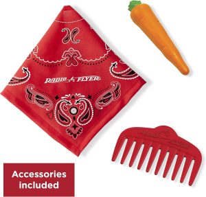 - Includes comb accessory and carrot that prompts eating sounds when “fed”.