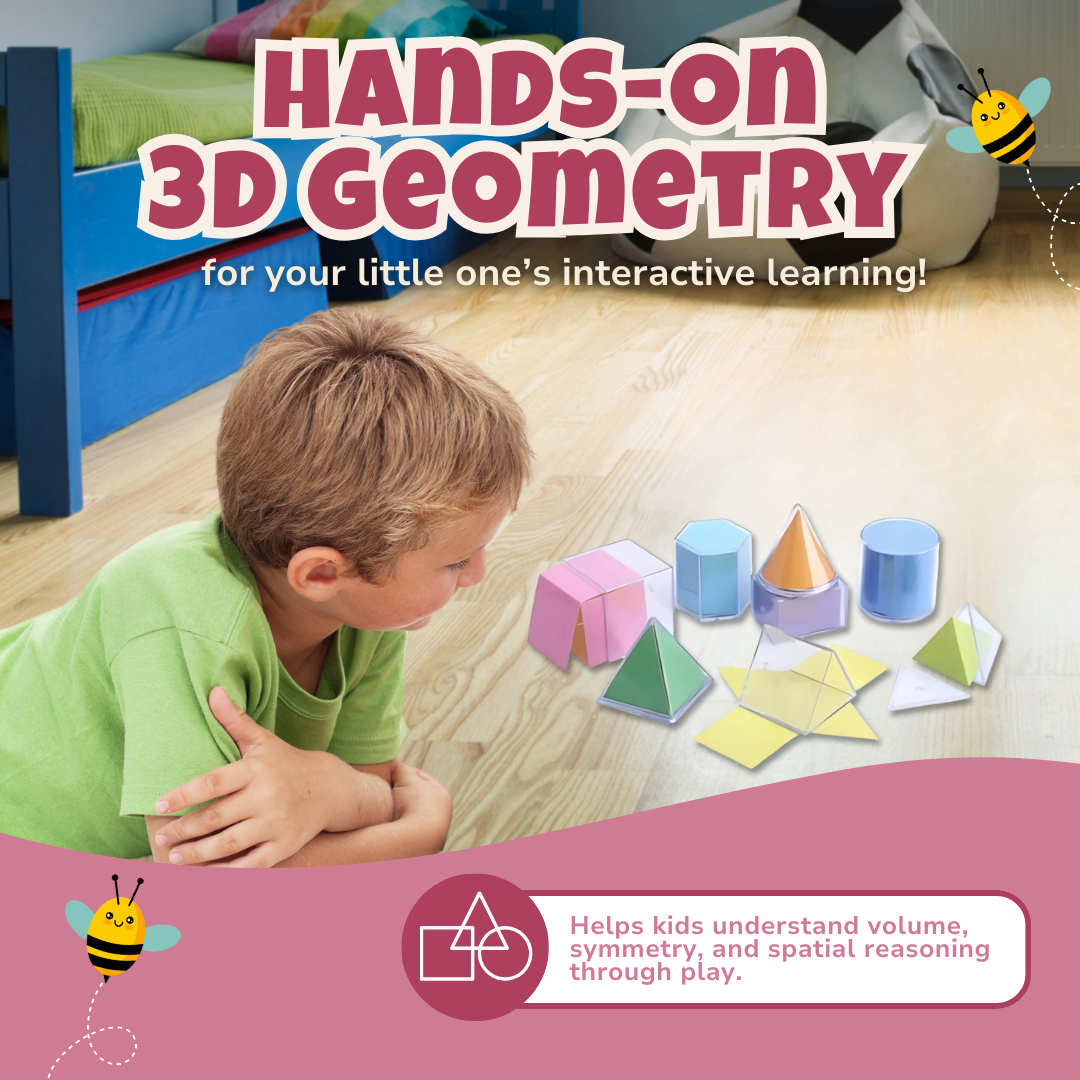 Each shape interlocks and stacks, turning math into an engaging game. Unlike basic geometry models, these are built for interaction. The transparency allows easy comparison of internal structures, helping kids understand differences between prisms and pyramids. These blocks are lightweight yet sturdy, making them ideal for both classroom demonstrations and at-home exploration. Whether arranging patterns, studying angles, or constructing shapes, this set keeps learners engaged.