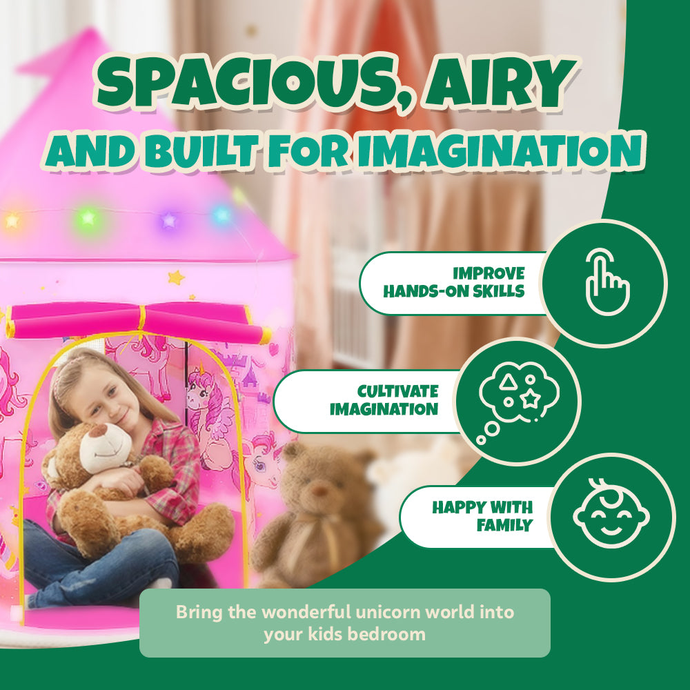 Perfect for birthdays and special occasions, this unicorn tent adds excitement to any playtime routine. Suitable for children aged 3 to 7, it encourages creativity while offering a cozy space for reading, playing, or napping. With a lightweight design, it can be moved easily from room to garden, adapting to different activities throughout the day. Unlike traditional bulky playhouses, its pop-up mechanism eliminates frustration, allowing for quick setup and takedown. Whether used as a princess castle, reading nook, or play fort, this tent provides endless fun while fostering imaginative storytelling and social interaction.